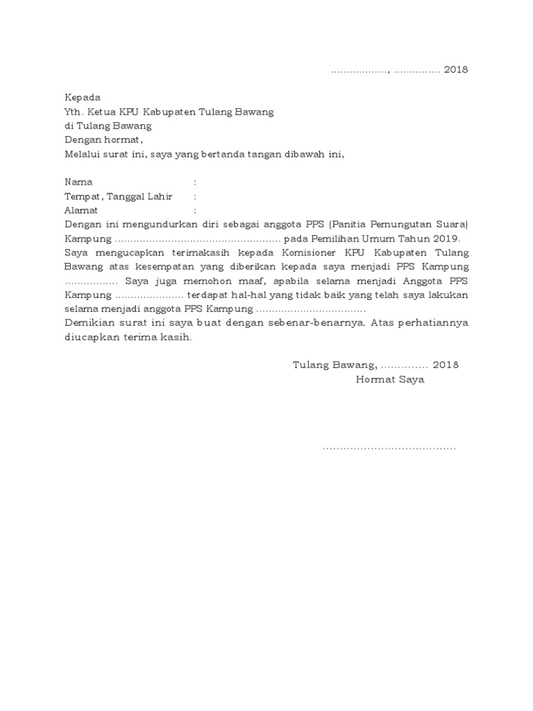 Contoh Surat Pengunduran Diri Anggota Pps from imgv2-1-f.scribdassets.com Contoh surat pengunduran diri yang pertama adalah surat pengunduran diri atau resign dari pekerjaan. Berikut beberapa contoh surat pengunduran diri atau surat resign dengan penulisan yang benar dan sopan, dilengkapi dengan trik dan tips pembuatannya. Dengan hormat, yang bertanda tangan di bawah ini Bersama surat ini saya hendak mengajukan surat pengunduran diri dari perusahaan aminerka dan melepas jabatan yang sedang saya pegang ini terhitung sejak hari ini tanggal 10 november 2018. Jika kamu merasa ingin mengundurkan diri dari pekerjaan kamu saat ini, maka tidak ada salahnya untuk belajar membuat surat pengunduran diri. Mengenai data diri berupa nama dan. Untuk mengundurkan diri dari jabatan tertentu seringkali diperlukan prosedur cocok digunkan sebagai surat pengunduran diri dari jabatan di pemerintah desa, seperti ketua rt / rw. Di sini, kamu bisa mempelajari berbagai contoh surat pengunduran diri yang baik disertai dengan format susunan serta tips untuk membuatnya.